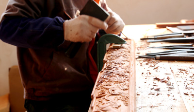流程三雕刻工序 為了讓紅木家具看上去更美觀,在木工工序完成之后一般都會用一些或簡單或復雜的雕花來進行裝飾,也就是行業中所說的雕刻紋飾。雕刻紋飾必須在“認榫”完成后進行,因為“認榫”時需要修整,如果先做好雕花再開榫,紋理很難保證雕花部件都在同一平面上,而此時為了保證雕花...